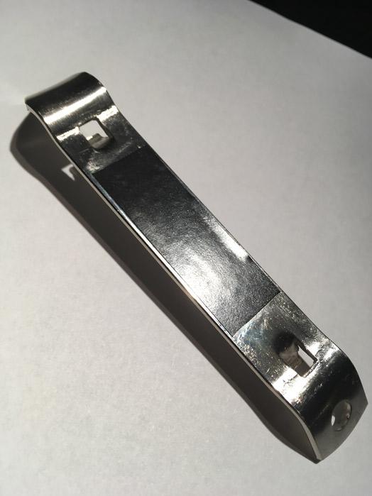 Đối với một dự án gần đây, tôi cần một dụng cụ mở nắp chai. Hình 1a là ảnh của một mục mẫu. Lưu ý rằng các móc nhảy cắt thành các khúc cua liền kề do chuỗi các cú đánh trong khuôn dập liên tục.
