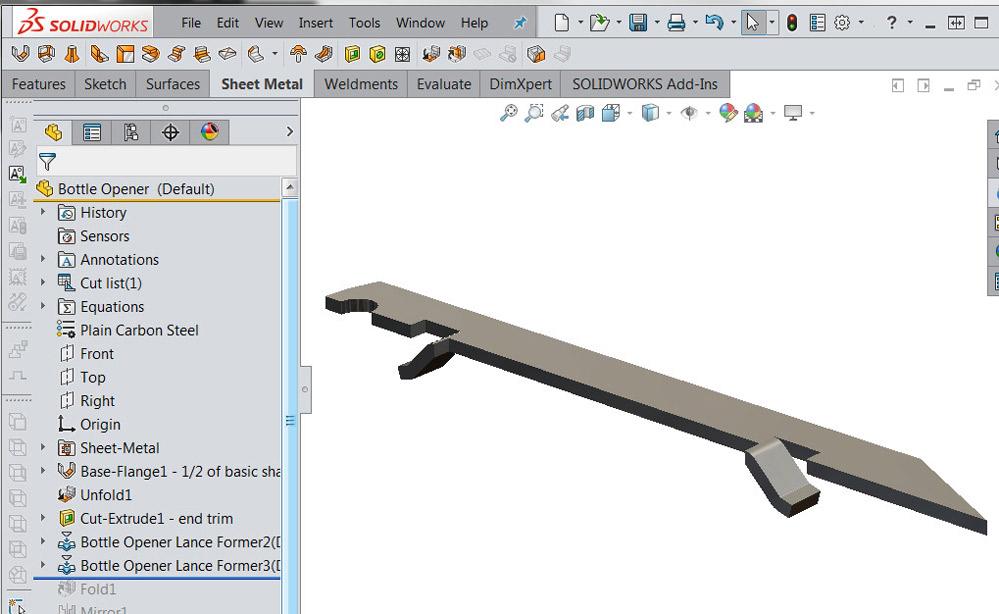 Với bộ kỹ năng CAD của mình, tôi thường xuyên sử dụng các công cụ tạo mô hình kim loại tấm trong CAD. Kỹ thuật cấp tốc là định hướng kim loại tấm. Một tạo tác của kỹ thuật này là mô hình có thể được mở ra. Nói cách khác, nó gần như phù hợp để thiết kế khuôn dập tiến bộ. Tuy nhiên, sản xuất dụng cụ mở chai không phải là mục đích.