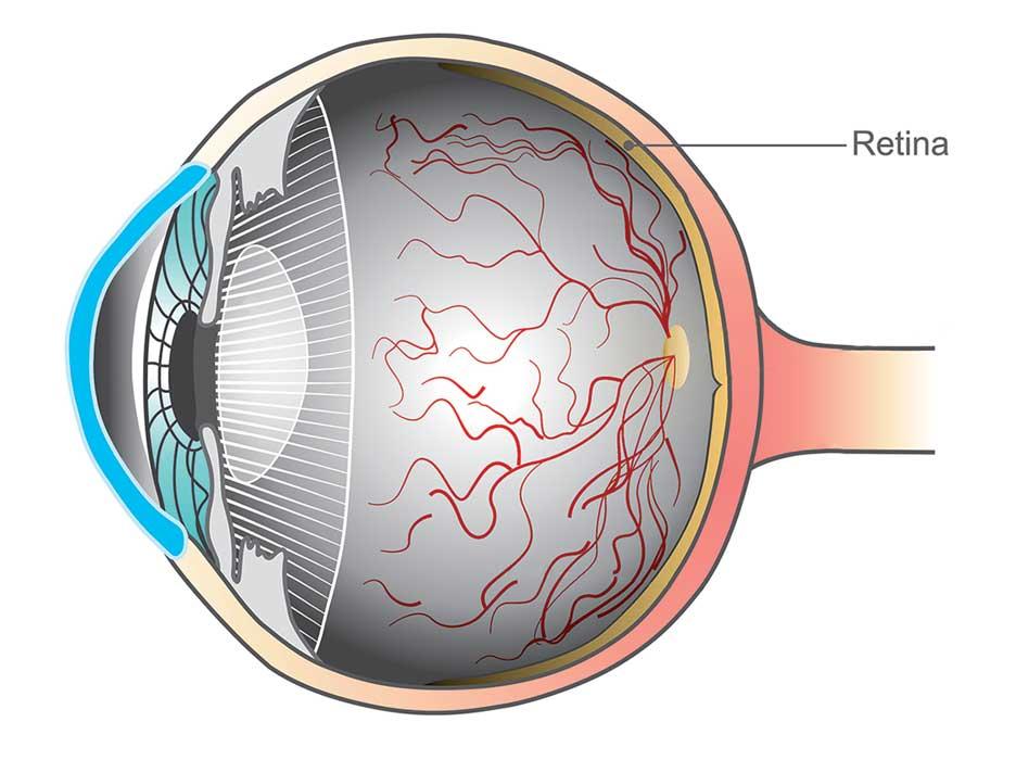 Hình 2 Nguy cơ đối với võng mạc có thể là tối thiểu khi gặp các chấn thương như “vòng cung mắt”, nhưng tổn thương, nếu xảy ra chấn thương võng mạc, có thể rất lớn. Võng mạc là một lớp mô mỏng nằm phía sau của mắt ở bên trong. Mục đích của võng mạc là nhận ánh sáng mà thủy tinh thể đã hội tụ, chuyển đổi ánh sáng thành tín hiệu thần kinh và gửi những tín hiệu này đến não để nhận dạng thị giác. Thiệt hại cho võng mạc có thể làm giảm đáng kể khả năng nhìn rõ của một người.
