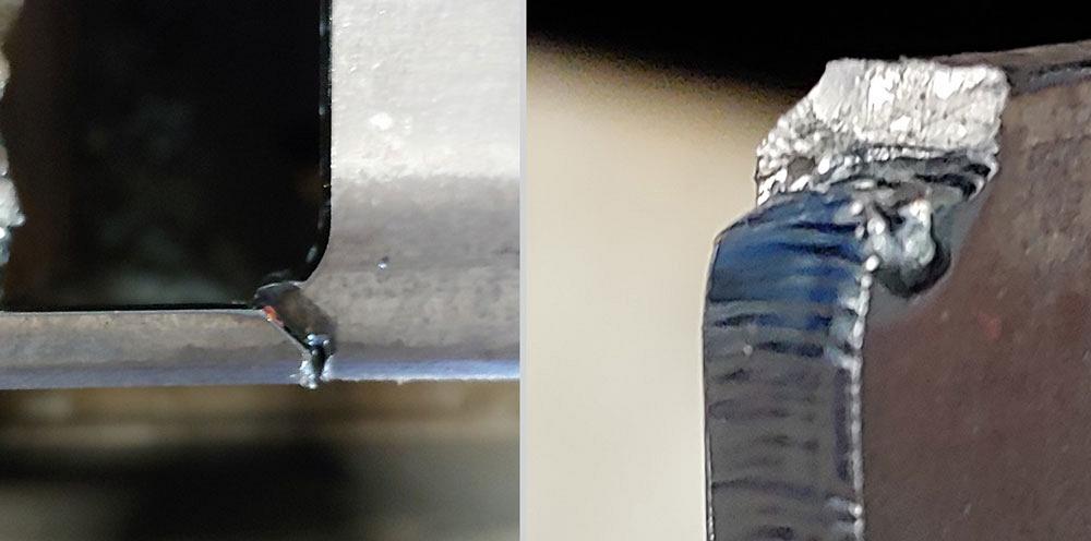 Một vấn đề cuối cùng liên quan đến việc thử thách các phần hình học, thường ở dạng tấm dày 0,25 inch và dày hơn, chẳng hạn như mẫu răng cưa sắc nét. Điều kiện cắt của máy được viết cho vô số hình dạng bộ phận — nhưng không phải tất cả. Một máy có thể có điều kiện cắt đối với một góc 80 độ, nhưng nó không có điều kiện cắt đối với góc 20 độ. Vì vậy, đầu không giảm tốc độ đủ để thực hiện chuyển hướng, và chùm tia làm tan chảy đầu của răng cưa. Tất nhiên, các điều kiện cắt có thể được tùy chỉnh, nhưng trước khi giải quyết vấn đề, các cửa hàng nên cân nhắc xem hình dạng của bộ phận có cần thiết hay không.